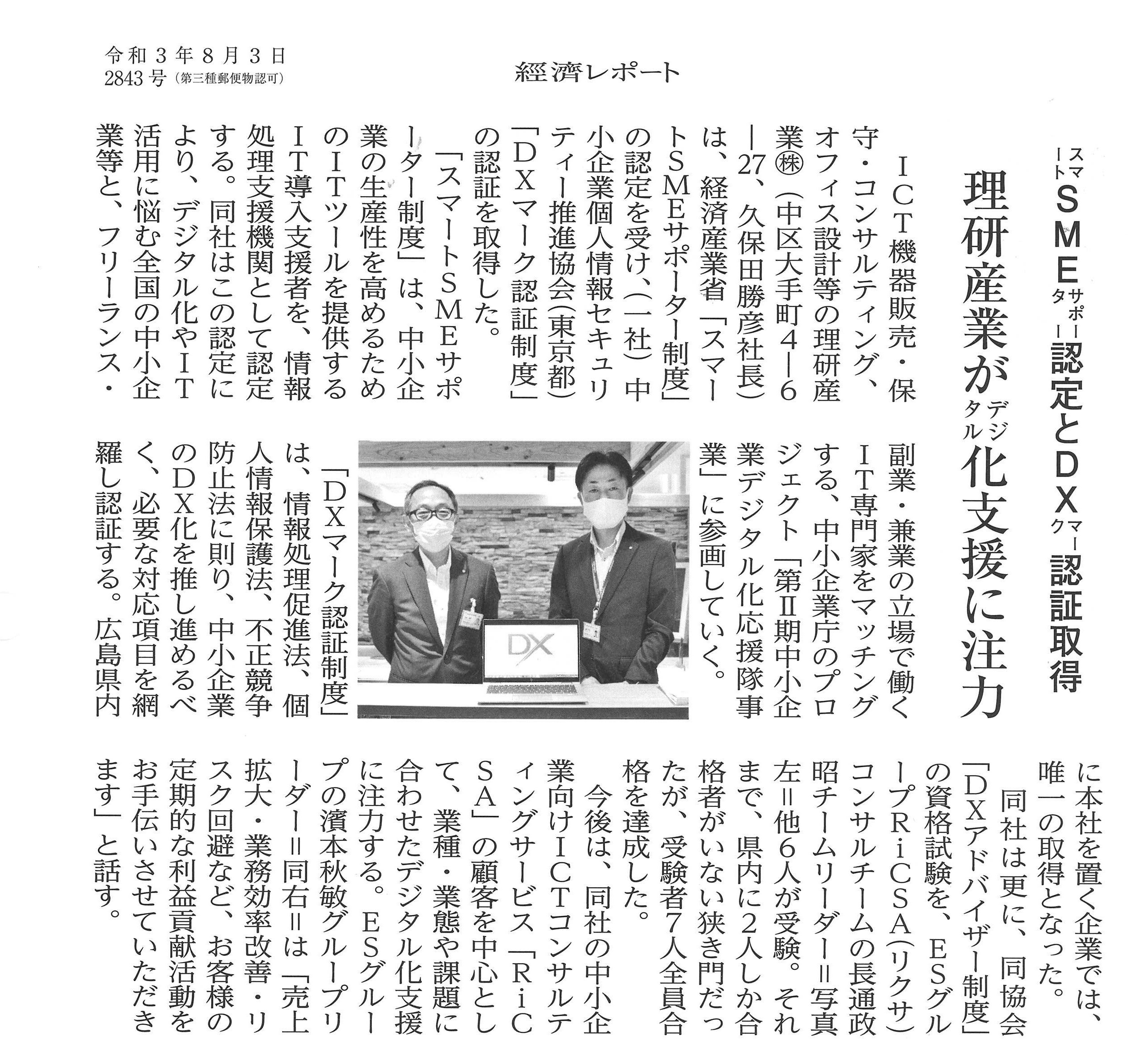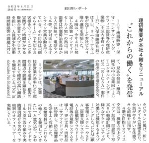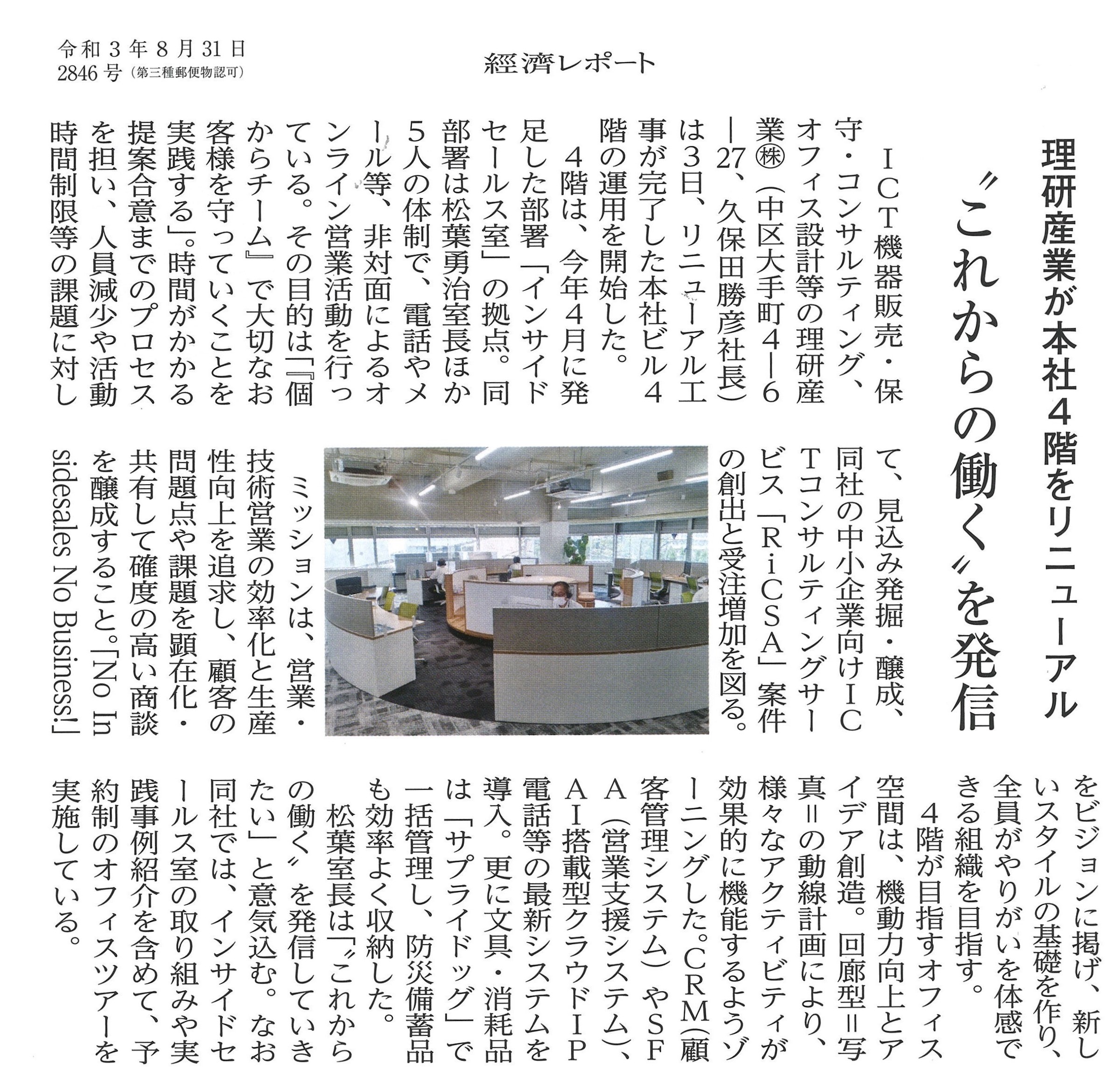 經濟レポート(経済レポート社)8月3日号・8月31日号に、当社の記事を掲載いただきましたので、当社ホームページでご紹介致します。
