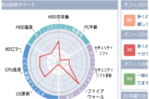 パソコンを中心に、“オフィス機器の健康”と“セキュリティの状態”を診断し、可視化することでリスクを回避します。