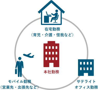 生活スタイルや働き方の多様化により、場所や時間にとらわれず柔軟に働ける環境が必要となっています。理研産業では、営業先や出張先はもちろん、自宅、レンタルオフィス、サテライトオフィスなど、どこでも働ける環境づくりのお手伝いをしています。