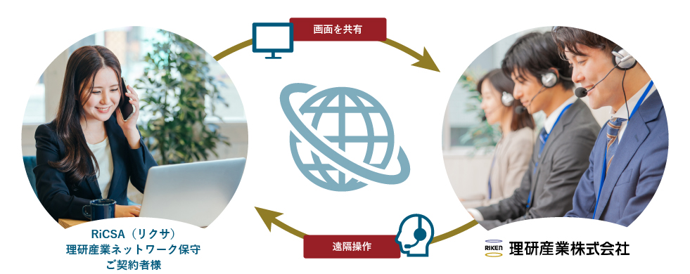 このサービスは、予めご契約いただいた『RiCSA(リクサ)』または『理研産業ネットワーク保守』契約の一部として実施されるサービスです。